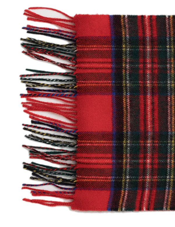 woven in elgin, scotland. finished with a twisted wool fringe. delicate touches, classic in style.